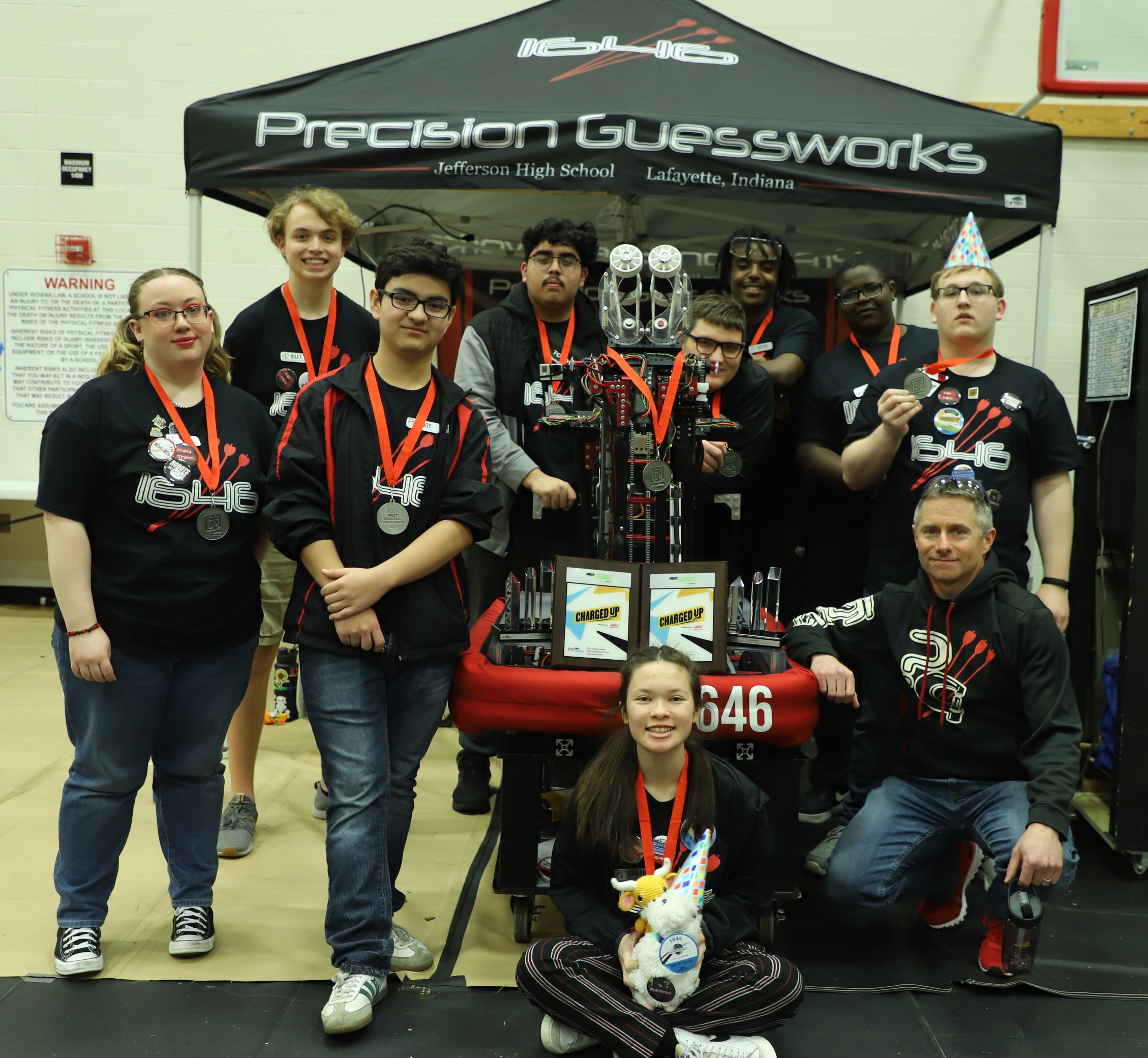 FIRST Team 1646, Precision Guessworks, is a robotics team located in Lafayette, IN. Our team not only builds robots, but we also encourage our members to achieve academic excellence and learn leadership skills that will serve them for life. We use our combined knowledge and skills to inspire people of all ages to learn and be excited about science, engineering, and technology through outreach events within the community.